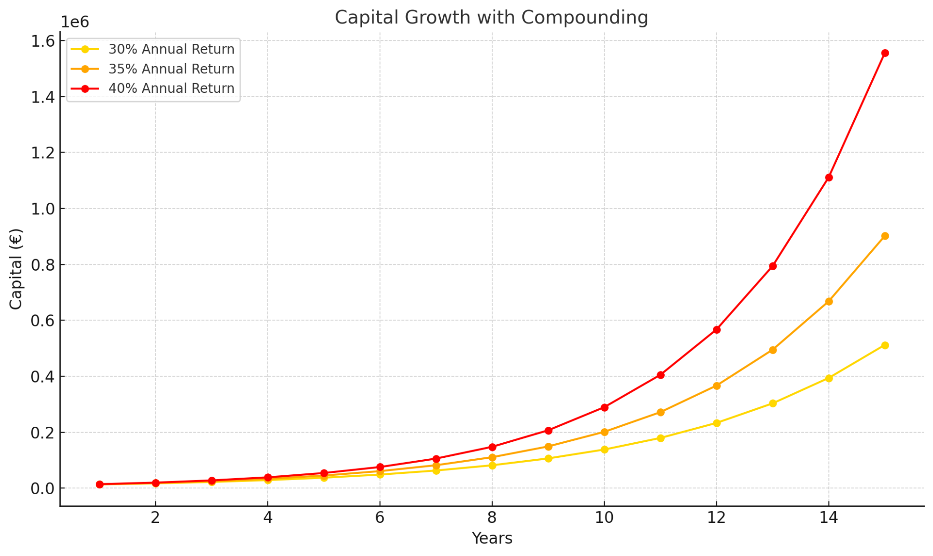 Capital Growth Scenarios with Annual Returns of 30%, 35%, or 40%.